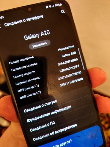 Продаётся самсунг а20 экране терешина но работает идеально не лагает память 32 оперативка 3 гб город ош тел