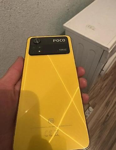 - Яркая жёлтая задняя панель с крупным блоком камер и фирменной надписью POCO.