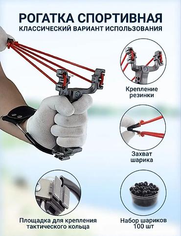 Рогатки комплектом + стальные шарики,дополнительно металлические продаются по 100 сомов Описание: - Три прочные рогатки разного типа: • Модель с анатомической рукояткой (темная). • Модель с ме...