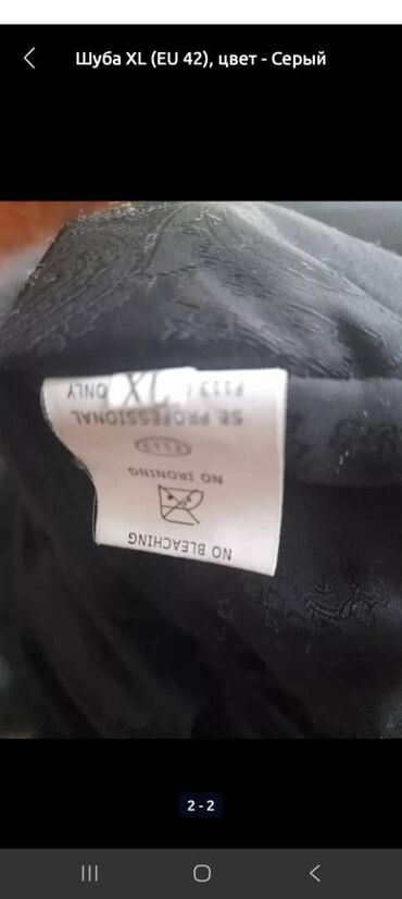 - Бирка: размер XL, уход — профессиональная чистка, без отбеливания и без глажки.