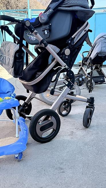 Детская коляска универсальная (люлька + прогулочный блок) Срочно продаем уезжаем - Шасси: прочная рама, ручка с шарнирами для регулировки наклона, передние поворотные колёса, задняя ось с тормозо...