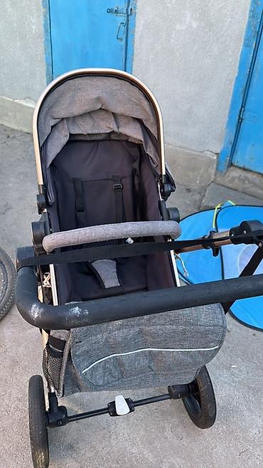 Универсальная детская коляска 3 в 1, цвет серый. Комплектация: - люлька для новорождённого с большим капюшоном и накидкой; - прогулочный блок (видно раму с регулируемой спинкой и подножкой); - авт...Вход•Регистрация