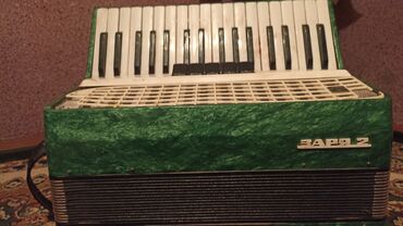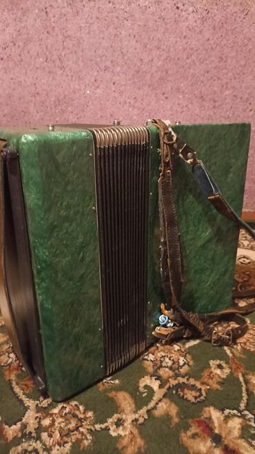 - Классический советский клавишный аккордеон в зелёном «перламутровом» корпусе