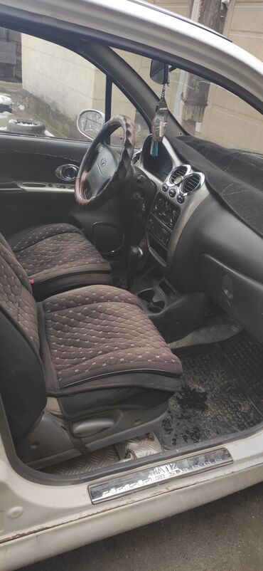 - Салон: тканевые чехлы на сиденьях, передние электрические стеклоподъёмники, центральная консоль с аудиосистемой, кондиционер/печка с ручным управлением, подстаканники, коврики, декоративные накладки «Matiz» на порогах, чехол на руле.