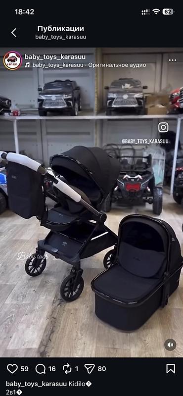 Прогулочная коляска Kidilo (чёрная) 2/1 очень в отличном состоянии -Использовали только прогулочную и очень мало ползовались продаю по нужде -Очень компактная коляска 4 колёсики на 360 градус крутя...