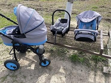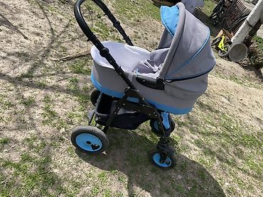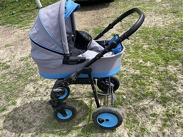 Детская коляска-трансформер 3 в 1, серо-голубая. Комплектация: -