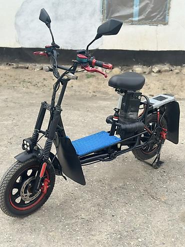 Электроскутер (сидячий) с двумя амортизированными вилками и большими