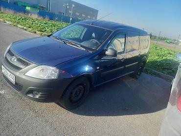 LADA Largus, сине‑черный кузов, кузов-фургон (двухстворчатые задние двери). На стальных штампованных дисках. Пробег по одометру: 364498 км (см. фото панели приборов). Передний бампер с противотуманными заглушками, боковые молдинги, зеркала в цвет темный матовый. Задние двери глухие, без остекления, с вертикальными фонарями. Резина установлена на 15" стальных дисках. Номер на автомобиле виден на фото.