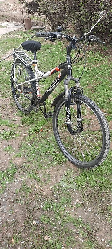 Подойдёт для поездок по городу, даче и лёгкому бездорожью. Удобный багажник для перевозки сумок, крылья защищают от грязи, амортизационная вилка сглаживает неровности. Размер универсальный для подростков и взрослых среднего роста. не много б.у.