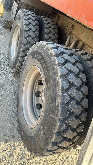 - Резина внедорожного типа 11R22.5 с крупным протектором на задней тележке