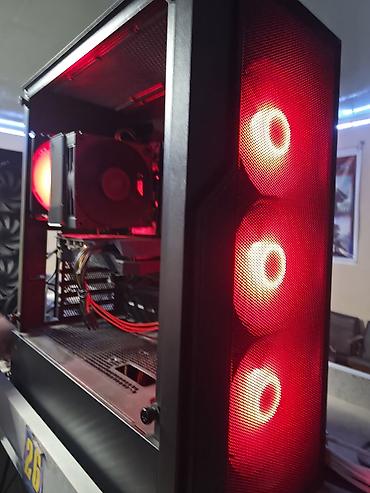 - Корпус: формат ATX с сетчатой передней панелью, установлен фронтальный блок из трёх 120‑мм вентиляторов с красной LED‑подсветкой и тыльный/верхний вентилятор; хорошая продуваемость