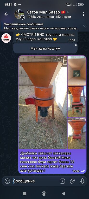 Дробилка жем чоп майдалагыч Жем чоп майдалагыч Универсальный Чоп майдалагыч Назначение: - Измельчение зерна, кукурузы, ячменя, пшеницы и других культур для приготовления комбикорма. - Подходит ...