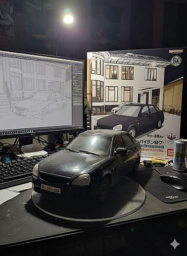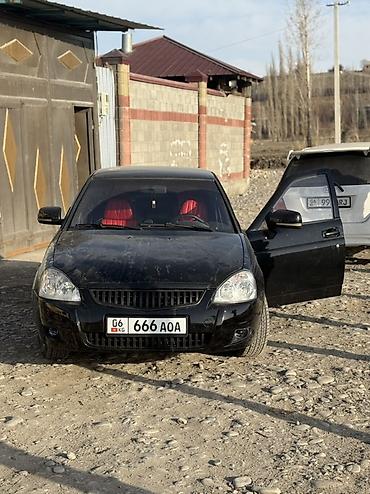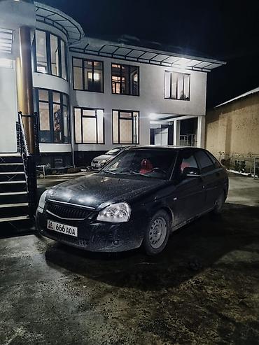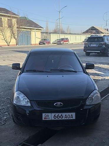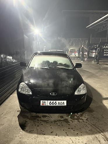 Хетчбэк Лада Приора, черный цвет. Киргизские номера “06 KG 666 AOA”.