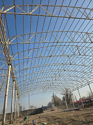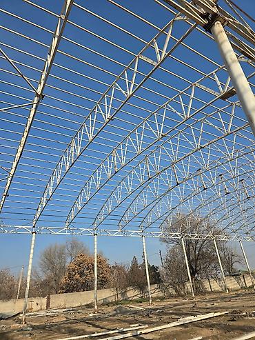 - Несущие элементы: круглые/трубчатые колонны и решетчатые фермы, продольные прогоны под кровлю