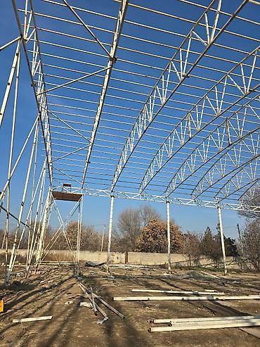 - Высота колонн — ориентировочно 7–9 м; ширина пролета — порядка 25–35 м (по фото), длина модуля собирается секциями