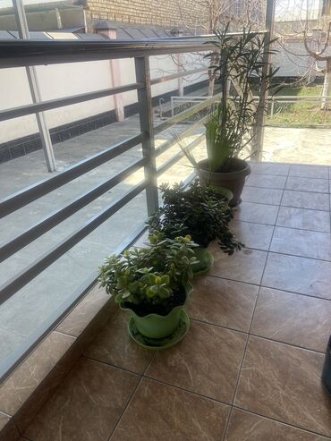 Комнатные декоративные растения в высоких цилиндрических кашпо - Вечнозелёные лиственные растения с плотными овальными листьями, рисунок на листьях – мраморно‑пятнистый (оттенки зелёного с салатов...