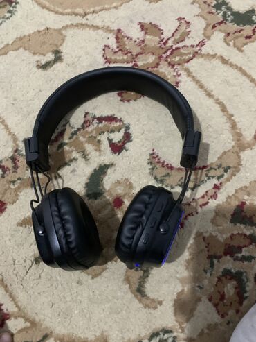 Беспроводные наушники, купил 2 месяца назад, редко пользовался, коробка немного поврежден, цвет черный, есть провод для зарядки, 2 режима подключения, Bluetooth или проводом