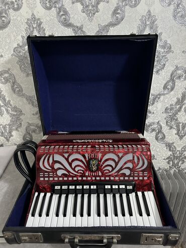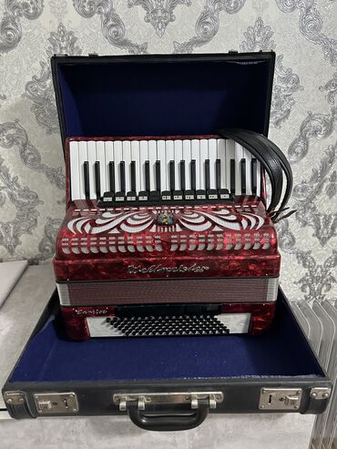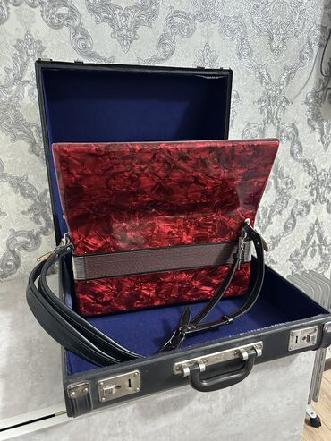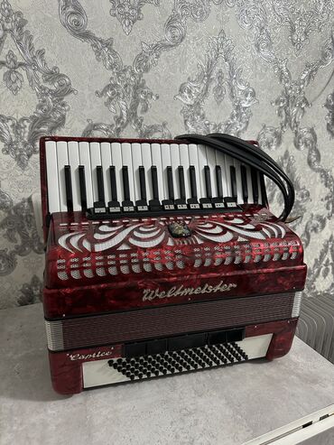 Аккордеон Weltmeister Stella, красный перламутровый корпус. Основные характеристики: - Правая клавиатура: фортепианная, 34 клавиши (отображено по диапазону), удобные регистровые переключатели над ...