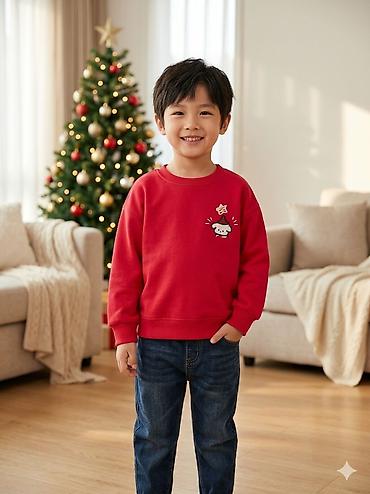 Детский свитшот/кофточка с длинным рукавом. - Цвет: ярко‑красный. - Принт: крупная белая бабочка по центру, вокруг — мерцающие точки и золотистая «спинка» бабочки. - Круглая горловина, эластичные м...