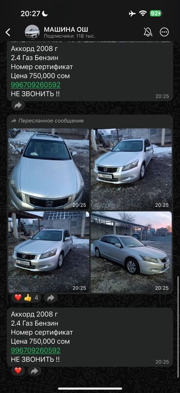 Продается Honda Accord 2003 г.в. 🔹 Двигатель: 2.4 л, бензин 🔹 Руль: Левый 🔹 КПП: Автомат 🔹 Состояние: Отличное для своих лет 🚘 Описание и особенности: ✔️ Надежный и экономичный двигатель 2.4 – оди...