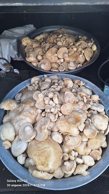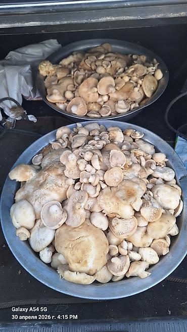 - Натуральные лесные грибы светлого цвета, разных размеров.