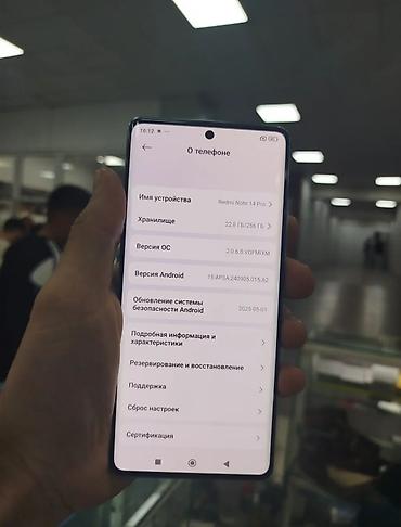- Интерфейс: фирменная оболочка с разделом «О телефоне» (Redmi Note 14 Pro), поддержка резервного копирования и восстановления, системные настройки, сертификация