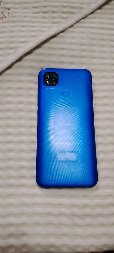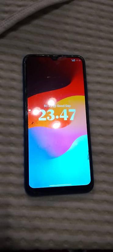 Смартфон с экраном с каплевидным вырезом, синим корпусом и тройной
