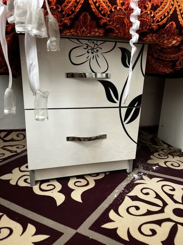 - Прикроватная тумба с двумя выдвижными ящиками и хромированными ручками, фасад с рисунком.