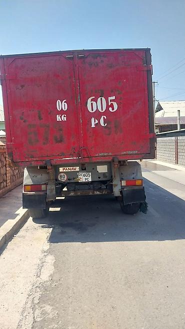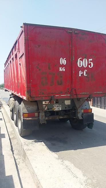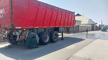 Самосвал с оранжевым кузовом, предназначенный для перевозки сыпучих материалов. Оснащен двойными задними колесами для улучшения устойчивости и грузоподъемности. Задние фонари и брызговики обеспечив...