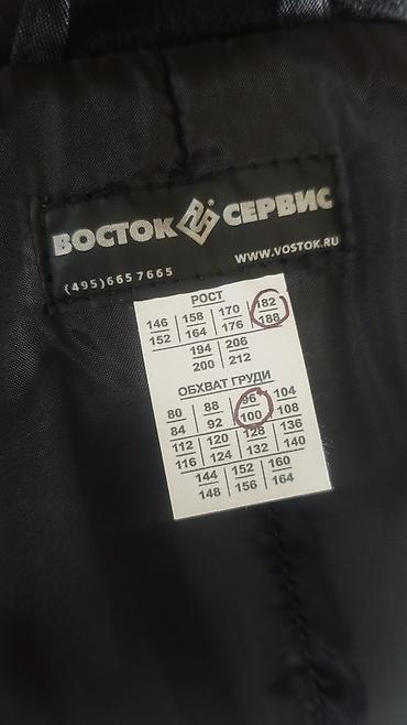 - Размер по бирке: рост 182–188 см, обхват груди 96–100 см.