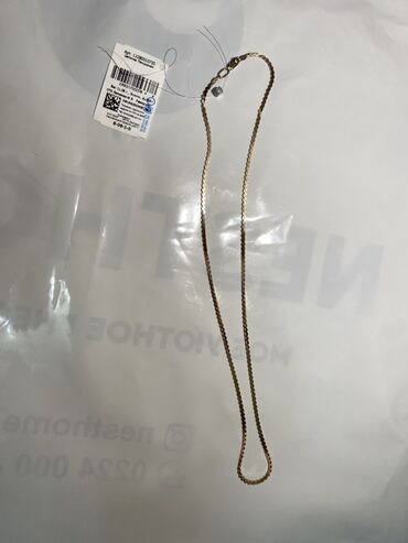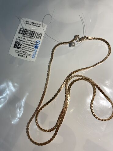 Золотая цепочка с биркой - Материал: золото 585 пробы (клеймо на бирке). - Тип плетения: плоское «змейка»/волна с зеркальной полировкой — даёт яркий блеск. - Цвет: красное/розовое золото. - Длина:...