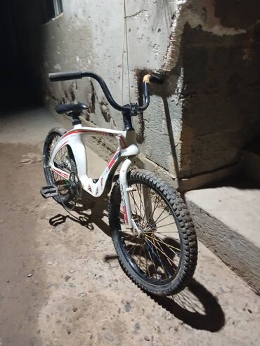BMX-велосипед для трюков и катания по городу. Особенности: - Стальная рама BMX с усиленной верхней трубой. - Колеса примерно 20" с широкими покрышками полуслик/грунт и частыми спицами. - Односкоро...