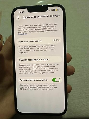 - Аккумулятор: максимальная ёмкость 100%, оптимизированная зарядка включена, пиковая производительность поддерживается