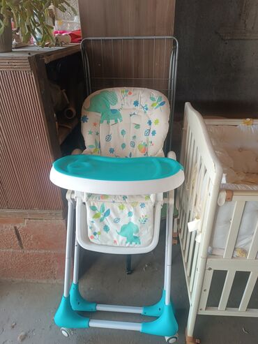 Продаю кровать манеж в разобранном состоянии с бортиками и матрасом и стульчик для кормления срочно.За все 4000с