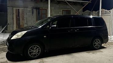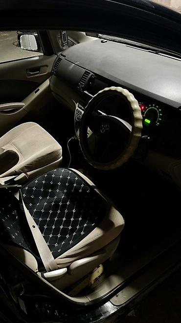 Минивэн Toyota Isis (правый руль), черный цвет кузова. Просторный 5‑дверный кузов с двумя сдвижными задними дверями, тонированные стекла по кругу. Передний привод, бензиновый двигатель, автоматическая коробка передач. Литые диски, зеркала и ручки в цвет кузова. Большие галогенные фары, передняя противотуманная оптика отсутствует. Салон рассчитан на 7 мест (третьий ряд сидений), трансформируемая компоновка: второй ряд раздельный, спинки складываются в ровный пол. В салоне: кондиционер/климат, электрические стеклоподъемники, центральный замок, мультируль. На борту установлены шильдики и решетка радиатора Toyota, номерные знаки KG. Подойдет для семьи и городских поездок благодаря удобной посадке, вместительному багажнику и экономичному мотору.
