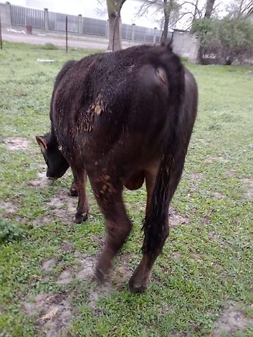 Бычек(чёрный окрас), биркованный. - Вид: крупный рогатый скот, молодняк. - Окрас: сплошной тёмный, светлые копыта. - Уши с идентификационными бирками, на морде — недоуздок. - Содержится в стойл...