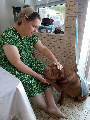 - Особенности: выраженный породный тип, крепкий костяк, сильные лапы. На фото видны классические складки кожи и плотная посадка корпуса.
