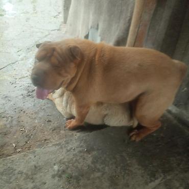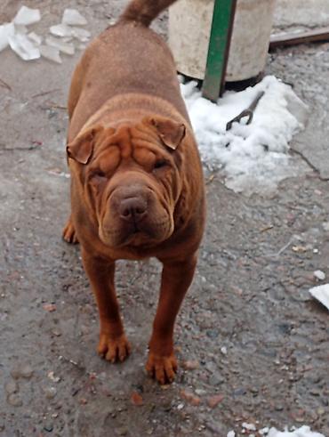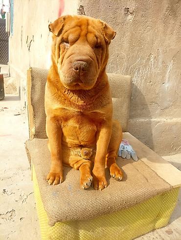 Шарпей, рыжий окрас. - Порода: шарпей (короткошёрстный, характерные складки на голове и шее). - Окрас: насыщенный рыжий (red/fawn). - Пол: по фото — кобель. - Темперамент: дружелюбный, общительны...