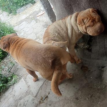 Щенок шарпея, кремовый окрас. - Порода: шарпей (короткошерстный, с характерными складками на голове и холке) - Окрас: светло-кремовый/песочный, ровный - Телосложение: крепкий, мощные лапы, широкая...