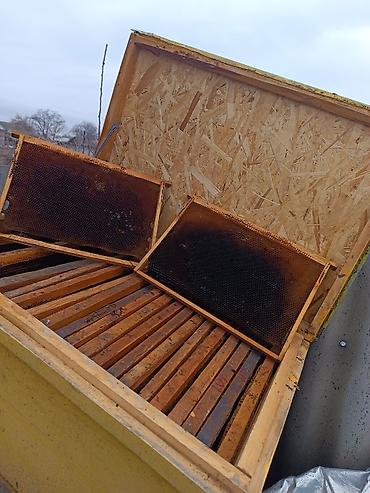- Внутри – комплект рамок стандартного размера под вощину/сушь; часть рамок с тёмной сушью.