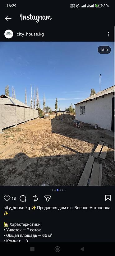 Дом в с. Военно-Антоновка, Ж/Д станция рядом до города 25-30 минут,ещё есть конечная 9 го автобус до Ошского рынка 20 мин , рядом новый автовокзал, авторынок