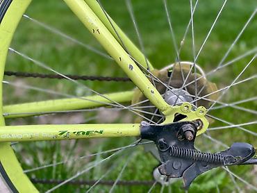- Цвет рамы и ободов: ярко‑лаймовый с зелеными элементами и фирменными наклейками «CLIO mint», «Zyden»