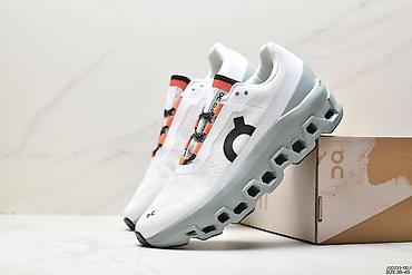 - Цвет: белый верх, серо-зеленая подошва, черные/оранжевые акценты, крупный логотип On по бокам.