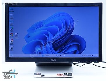 Монитор AOC с тонкими рамками - Диагональ: ориентировочно 23–24" - Матрица: плоская, антибликовое покрытие - Корпус: черный, узкие рамки снизу логотип AOC - Подставка: устойчивая квадратная, накло...