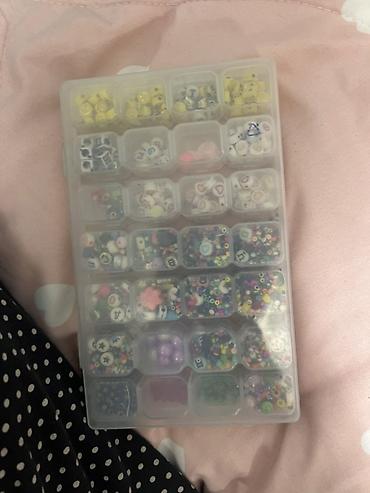 - Внутри большой ассортимент бусин: круглые, цилиндрические, фигурные, матовые и глянцевые, микс пастельных и ярких цветов.