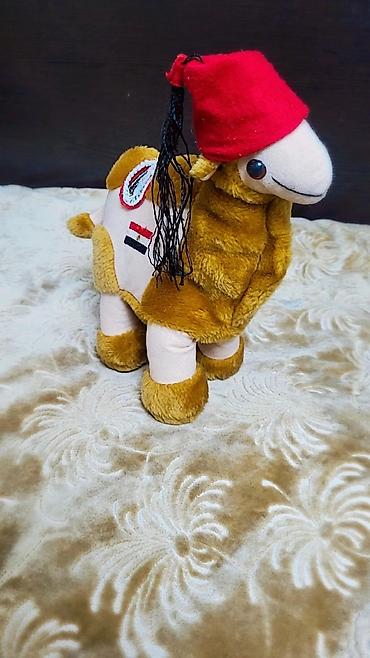 - Верблюд в красной феске с подвесной кисточкой и нашивками-флажками на боку. Стоит на четырех лапках, приятный на ощупь плюш.