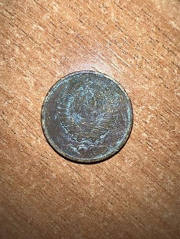 - 15 копеек 1977 года. Реверс: крупный номинал «15 копеек» и дата «1977». Аверс: герб СССР и надпись «СССР».