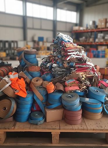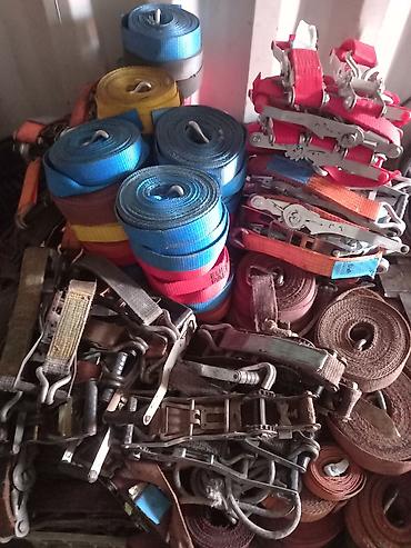 Стяжные ремни с храповым механизмом (ratchet straps) - Ширина ленты: 2" (примерно 50 мм) - Длина каждой ветви: 5 м - Материал: 100% полиэстер - Растяжение: не более 7% - Предельная рабочая нагрузк...