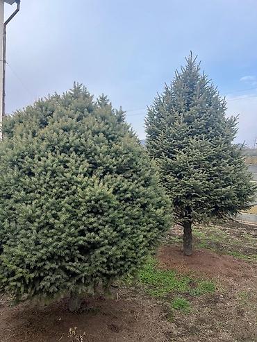 - Высота: от средних до крупных экземпляров; в наличии деревья с плотной, правильной конусовидной кроной. Есть большой экземпляр голубой ели с широкой кроной.
