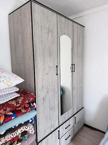 1) Трехдверный шкаф с зеркалом (серый «под дуб»)